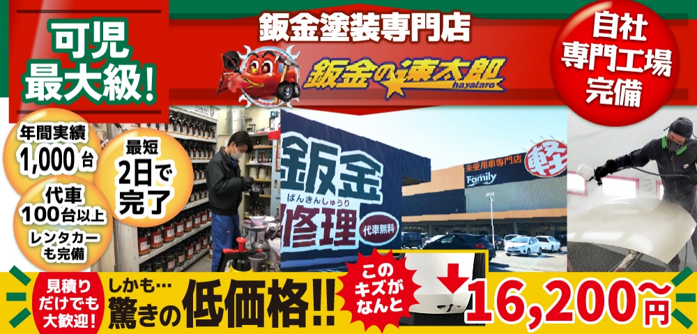 「鈑金の速太郎」可児店の板金・修理工場では、 最新の設備と環境に優しく仕上がりも良い水性塗料を使用して、板金・修理を業界最高の品質で仕上げます。