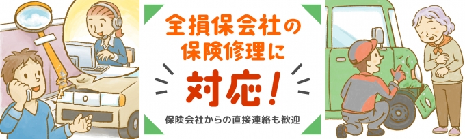 お客様からの直接のお問い合わせ、保険会社様からのご連絡、どちらも全ての損保に対応しておりますので是非ご相談ください!